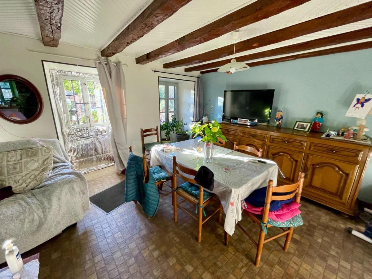 Vous trouverez dans ce corps de ferme d'environ 117 m² au sol, la pièce de vie, avec le cantou, une cuisinière a bois et la cuisine ouverte.
