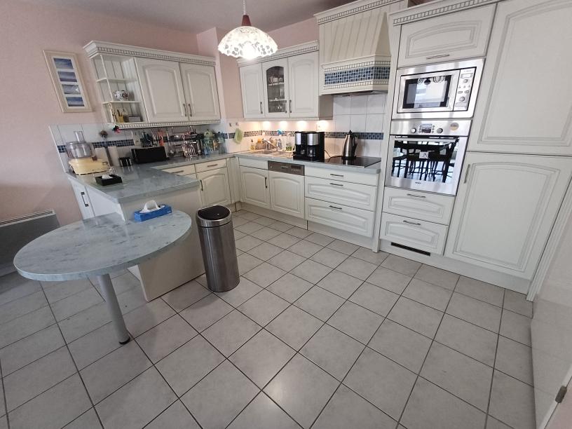 En rez-de-chaussée, une cuisine meublé...