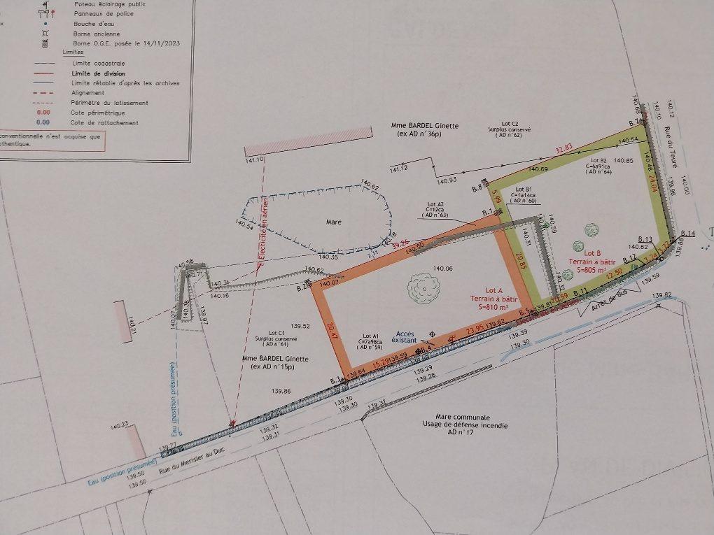 Beau terrain à bâtir de 1360 m² viabilisé pour l'eau et l'électricité, édifié d'une petite grange en briques, situé sur la commune de SAINT MESLIN...