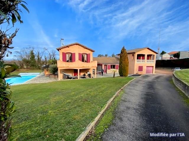 Très belle maison de charme individuelle de 240m² habitables sur un terrain plat, clos et arboré de 1908m² en plein centre-ville de FEURS (42), pis...