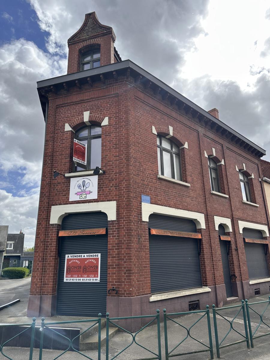 Situé en plein centre de Saint-Venant, Immeuble mixte d'angle composé d'un local commercial de 156 m² environ avec sous-sol, un espace stockage-gar...