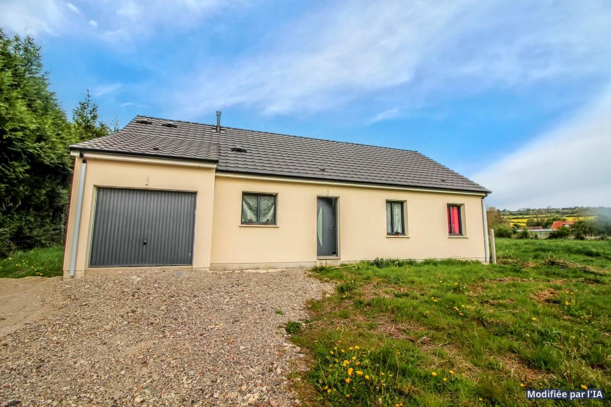 Maison individuelle de plain-pied de 89 m² habitables comprenant un grand séjour avec cuisine ouverte meublée, cellie...