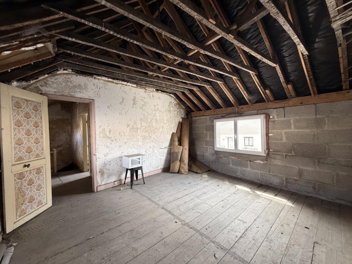 A rénover en intégralité (hors toiture), cette maison comprend :