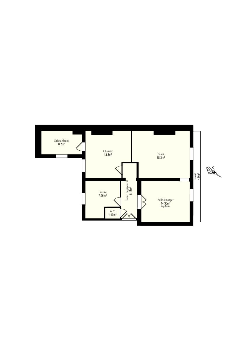 - entrée, cuisine, séjour, véranda, trois chambres, WC, salle de bain (baignoire, bidet, la...
