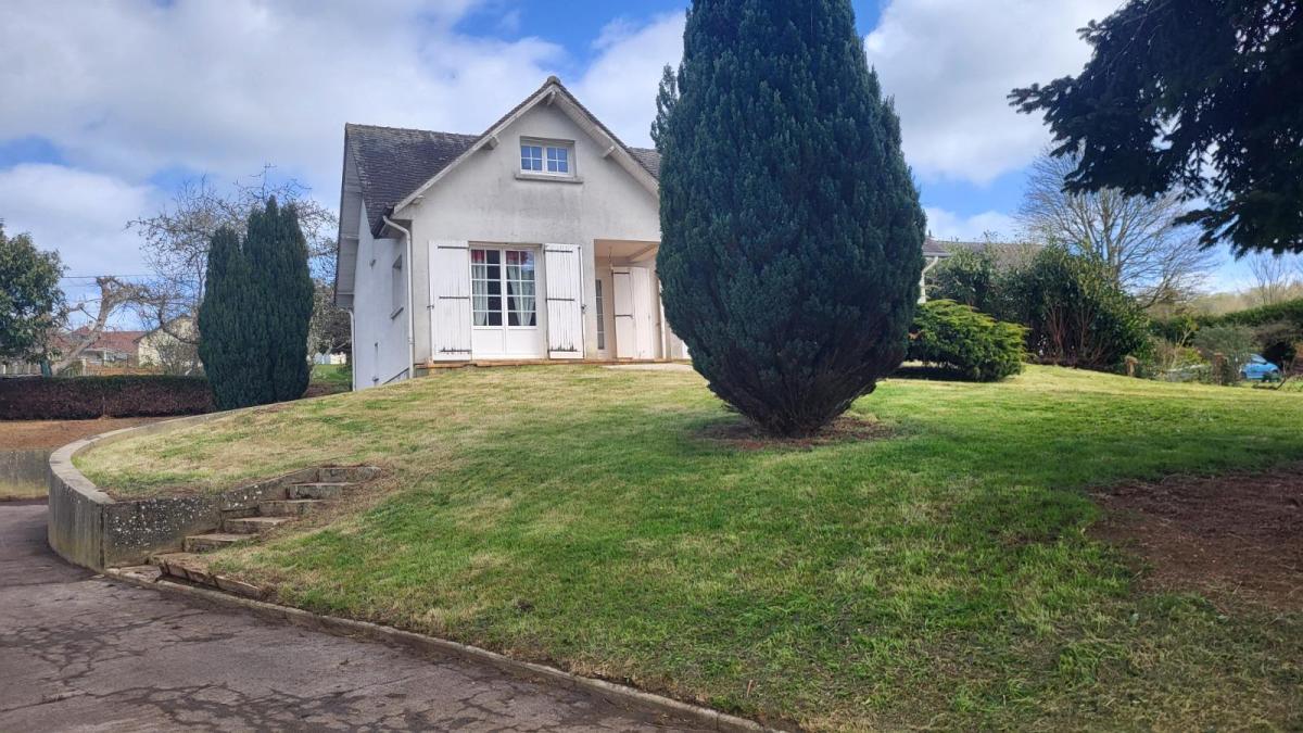 En sortie de ville, dans un quartier résidentiel, pavillon de 128 m² comprenant entrée, séjour, cuisine aménagée, wc, deux chambres, bureau, et sal...