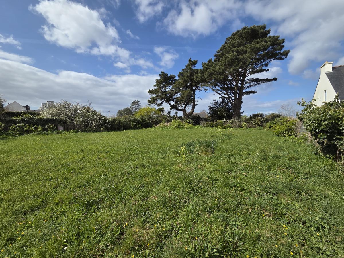 A Vendre à Merlevenez Centre, terrain constructible Zone Ub, 478 m2 supportant un petit bâtiment à détruire.