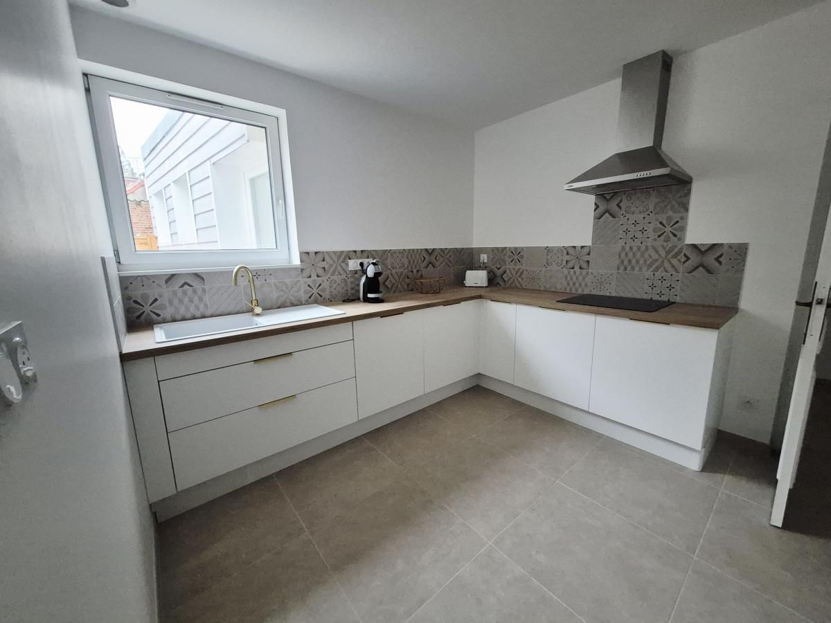 Une maison d'habitation comprenant une entrée sur pièce de vie (salon-séjour) avec cuisine aménagée et équipée, deux chambres, une salle d'eau, wc...