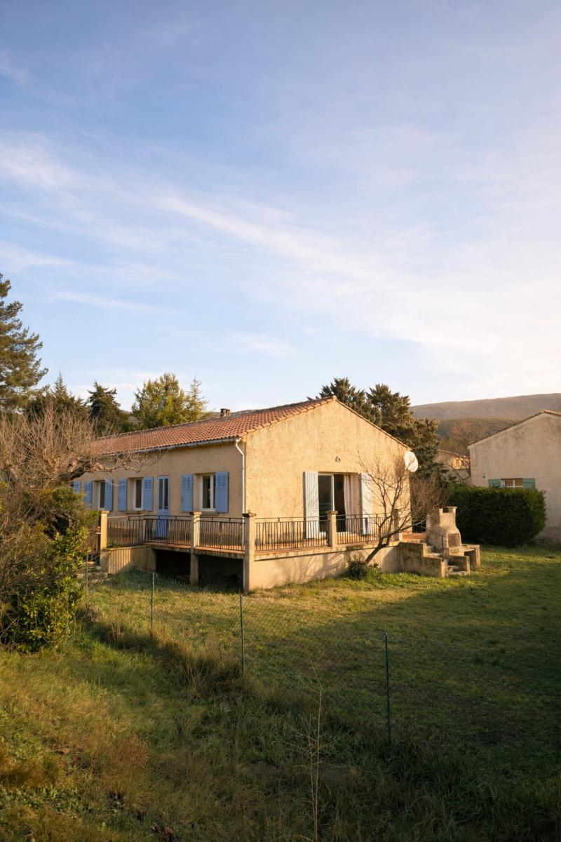 Maison exposée plein sud avec terrasses sur terrain arboré d’oliviers, parcelle piscinable. Villa de plain-pied des années 60 d’une surface habitab...
