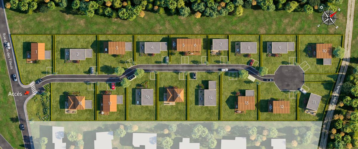 La Promenade des Tilleuls comporte 18 lots destinés à de la maison individuelle, à partir de 262 m² et jusqu'à 793 m², avec des prix à partir de 36...