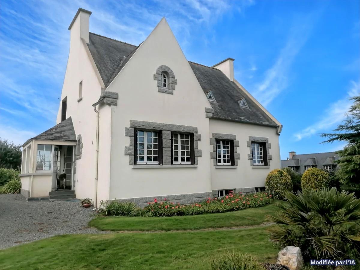 Maison type Néo Bretonne des années 70, élevée su sous sol total. Elle se compose d'une véranda d'entrée, une entrée, une cuisine A/E, un séjour, s...