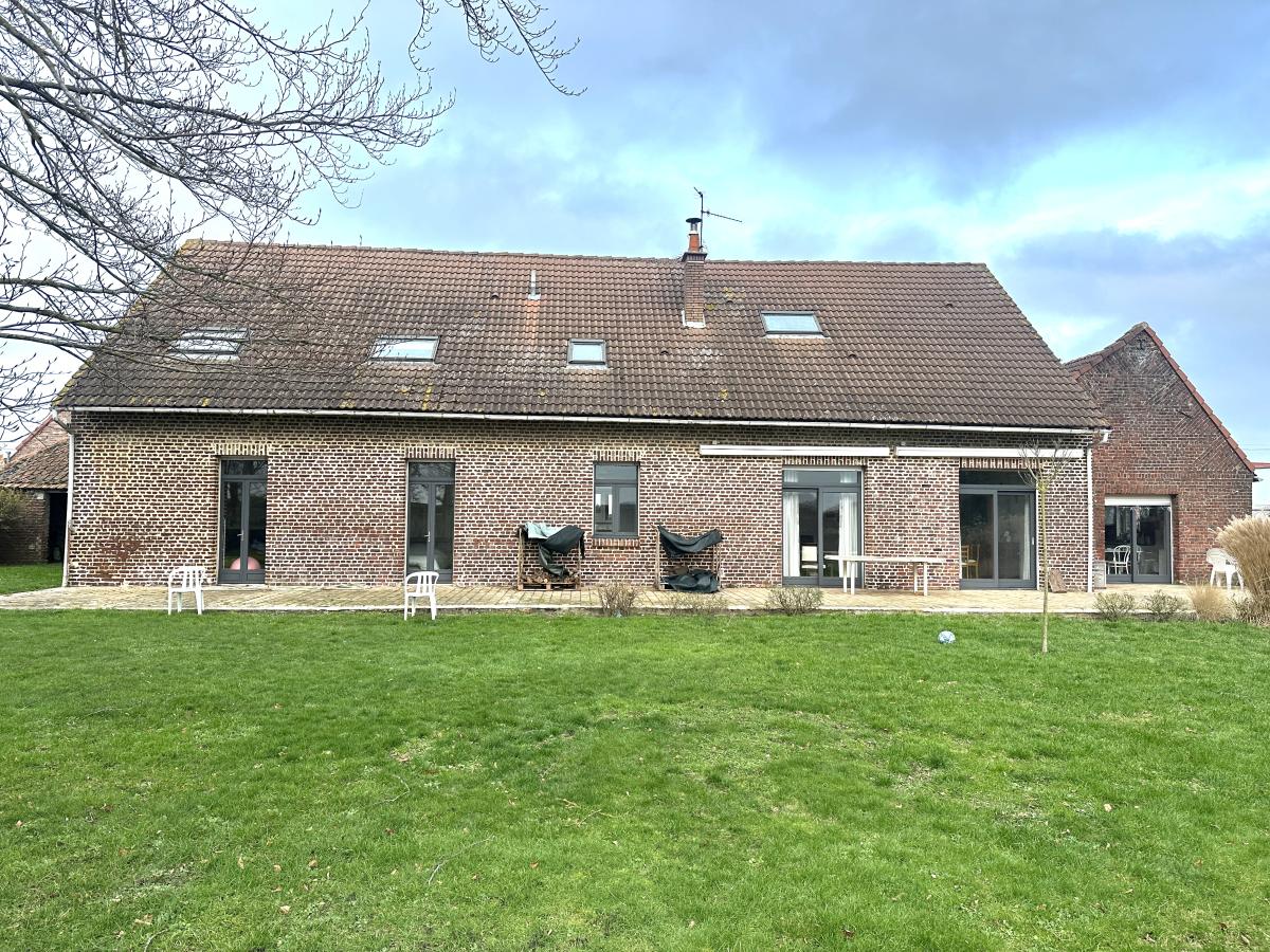 Dans le secteur des Weppes, à proximité de Marquillies, authentique corps de ferme en U avec cour et jardin, terrain et dépendances aménageables of...