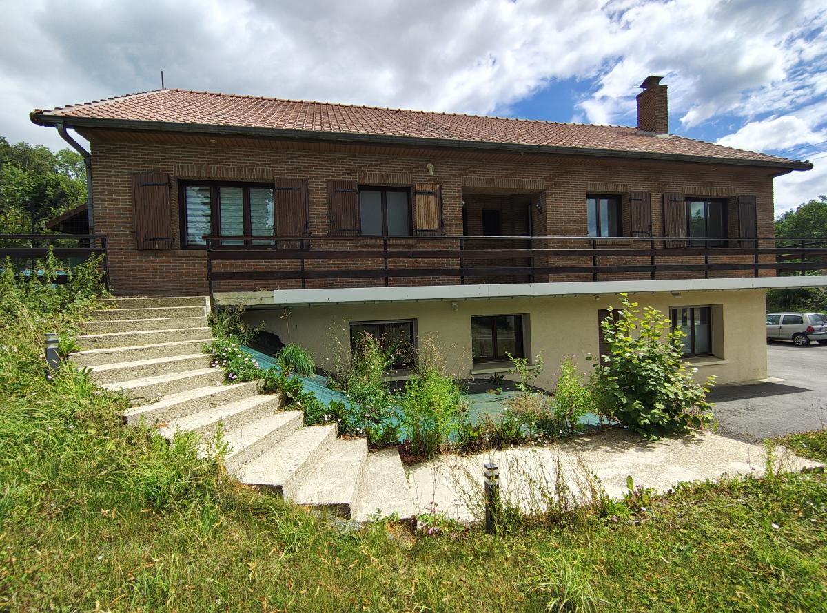 Maison sur sous-sol édifiée sur un très grand terrain, offrant un cadre agréable et de belles possibilités d’aménagement.
