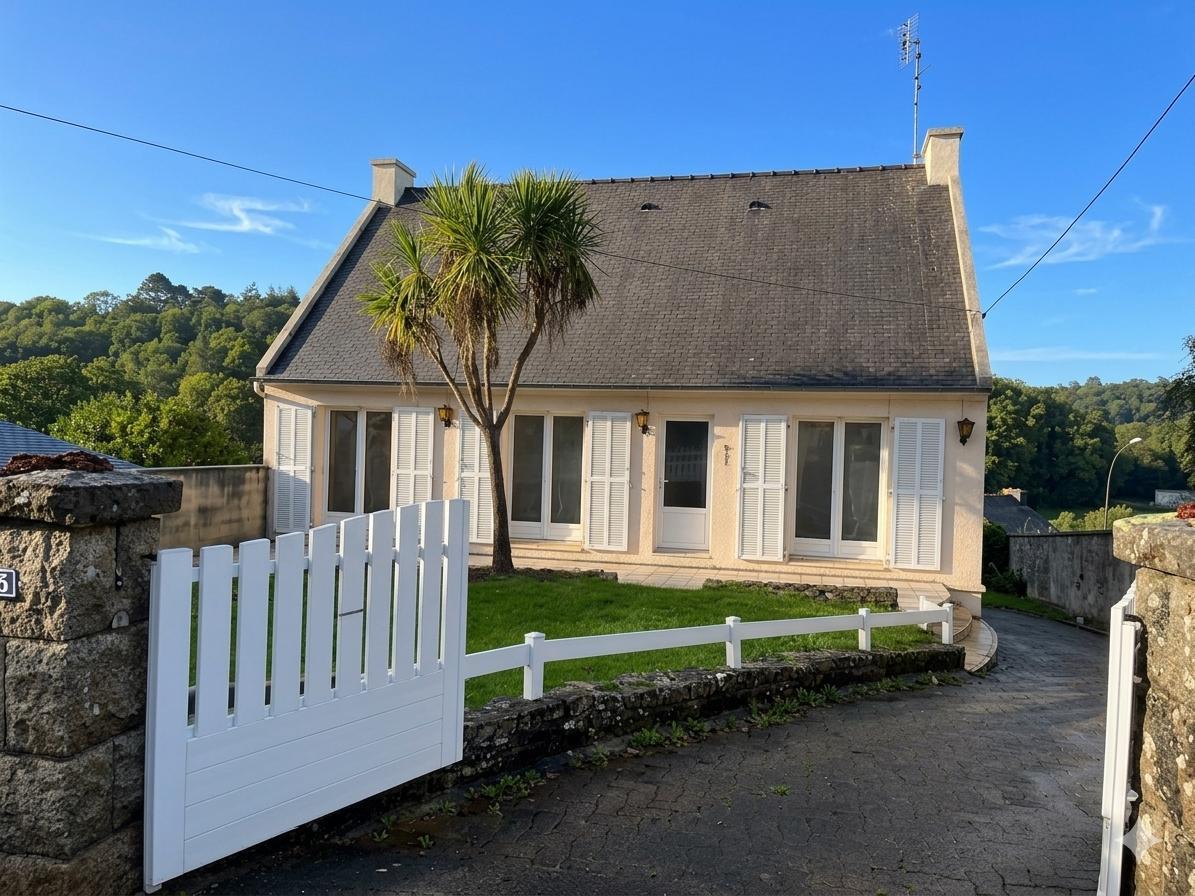 MORLAIX, proximité centre-ville, maison sur cave comprenant cuisine, salon/séjour avec cheminée, une chambre, salle d'eau, wc. A l'étage : 2 chambr...