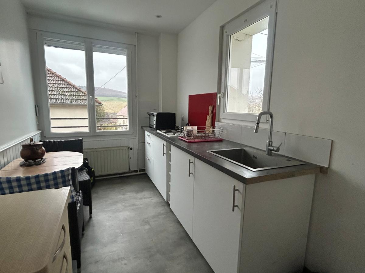 / au rdc haut: entrée dans cuisine aménagée ( éléments hauts et bas, évier 2 bacs, hotte),...