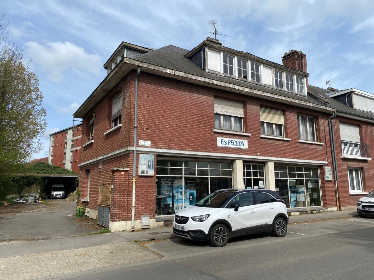 DOULLENS sur 1152m² (173m²) immeuble comprenant espace magasin (60m²), 2 bureaux, dégagement, cuisine, pièce et WC. Etage 3 appartements diversemen...