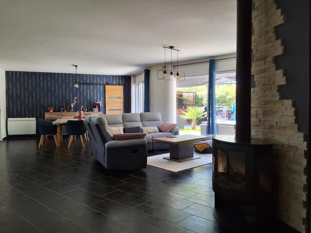 Entrée donnant sur espace de vie avec cuisine équipée et séjour 31m² ouvert sur sa...