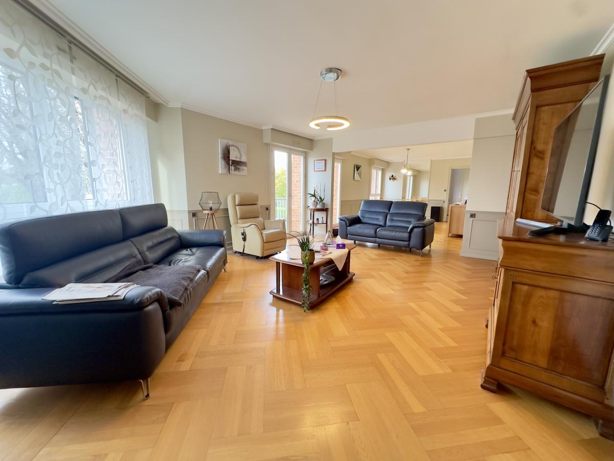 CAEN rive gauche - Résidence de bonne tenue avec ascenseur, beau 5 pièces de 119 m2, comprenant séjour salon 37 m2, cuisine aménagée, 3 chambres, 2...