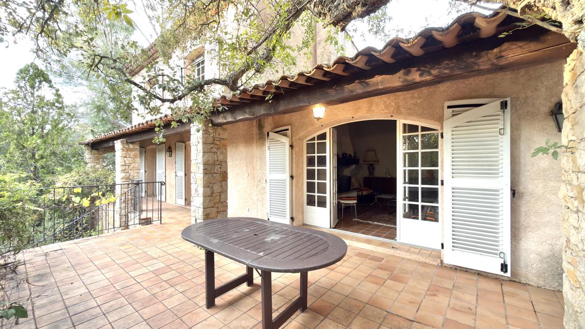 Dominant les hauteurs résidentielles de Saint-Raphaël – Valescure Nord, à proximité immédiate du golf de Valescure, cette villa des années 1970 inc...