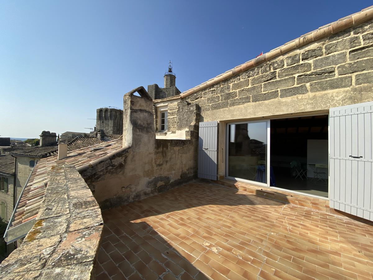 Au cœur du secteur historique et sauvegardé de la ville d'Uzès un appartement lumineux de 102 m²en loi CARREZ (et environ 150 m² habitables) sédu...