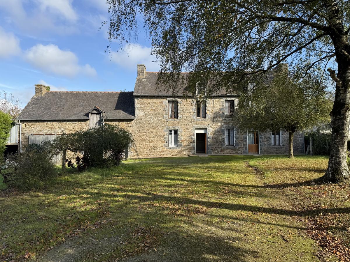 Longère en pierres sous ardoises comprenant au rez-de-chaussée une entrée, une cuisine avec cheminée (poêle à bois), une grande pièce (séjour) avec...