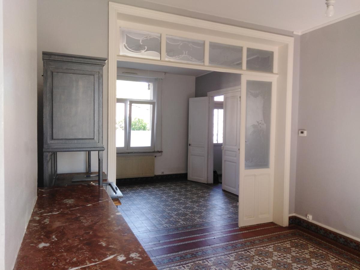 Maison de ville mitoyenne par garage/ proche d'entrée construite en briques couverte en tuiles, comprenant entrée cuisine, arrière cuisine, séjour...