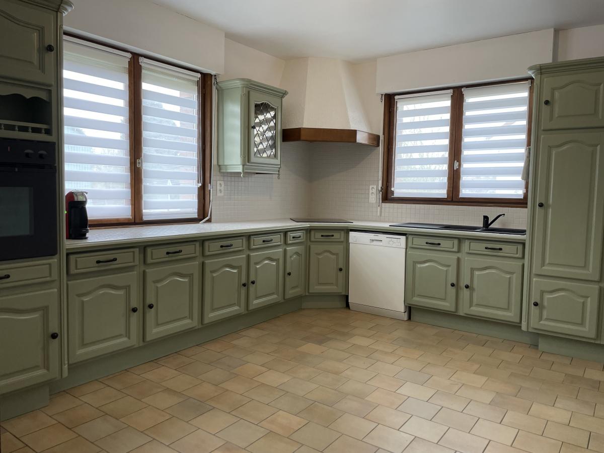 LOCMINE ville au calme - Très belle maison d’habitation élevée sur sous-sol total composée au rez-de-chaussée de : une entrée, une cuisine aménagée...