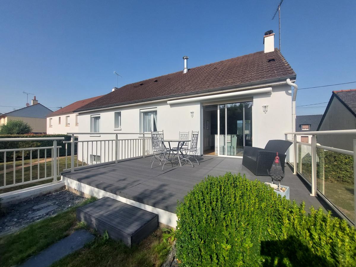 MAISON A VENDRE A 20 mn de Vannes, jolie maison de 1974, entièrement réhabilitée en 2017, sur très beau terrain de 2 092 m2 : RDC : entrée/placard...