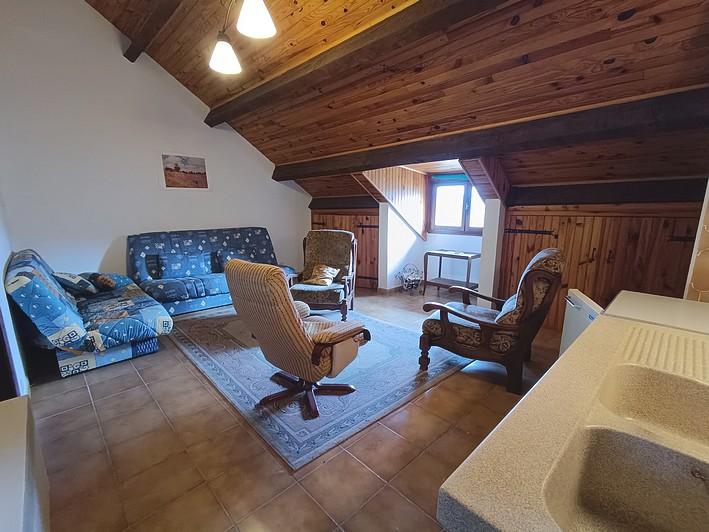 Gite 1 de 62m²: Entrée sur séjour avec cuisine aménagée équipée, salle d'eau, wc. A l'étage: palier, de...