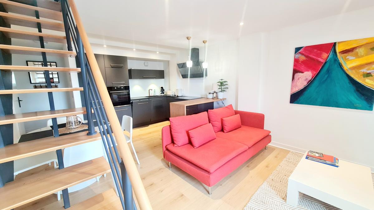 PORNIC en plein cœur du centre ville et à 2 pas du port, cet appartement en duplex situé au 3ème étage avec ascenseur est composé d'une entrée avec...