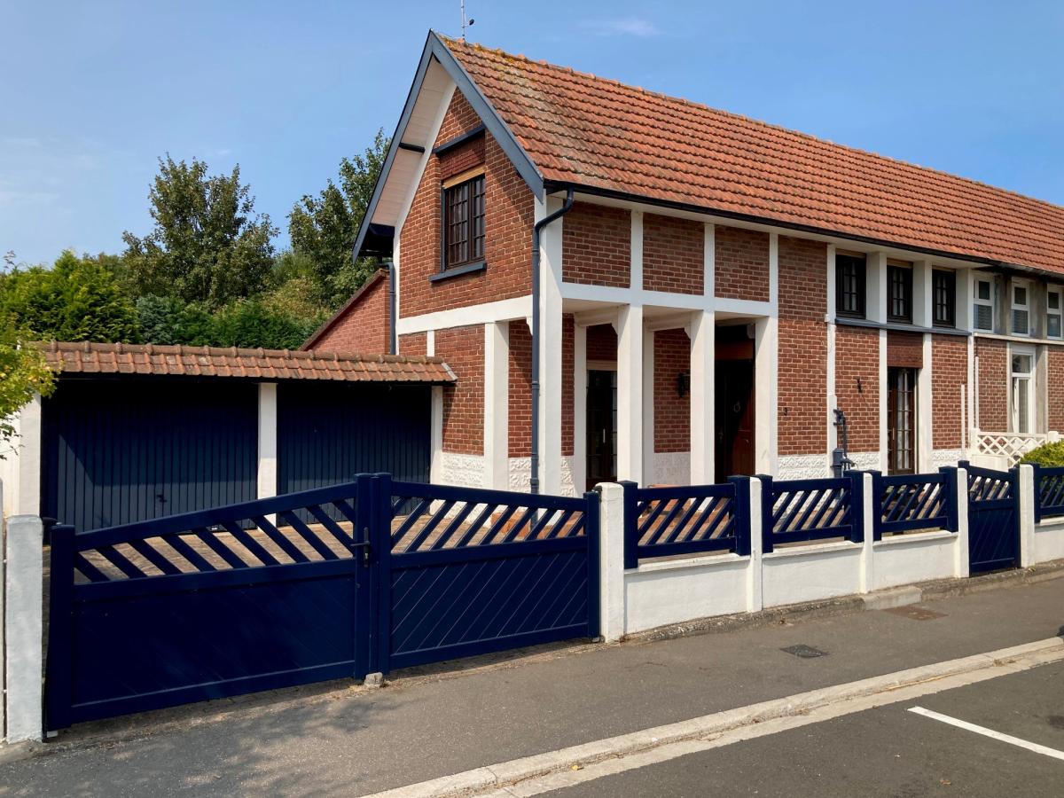 Maison en briques des années 30 de 126m² habitables composée au rez-de-chaussée d'une entrée avec salon, cuisine, salle de bains et buanderie + vér...