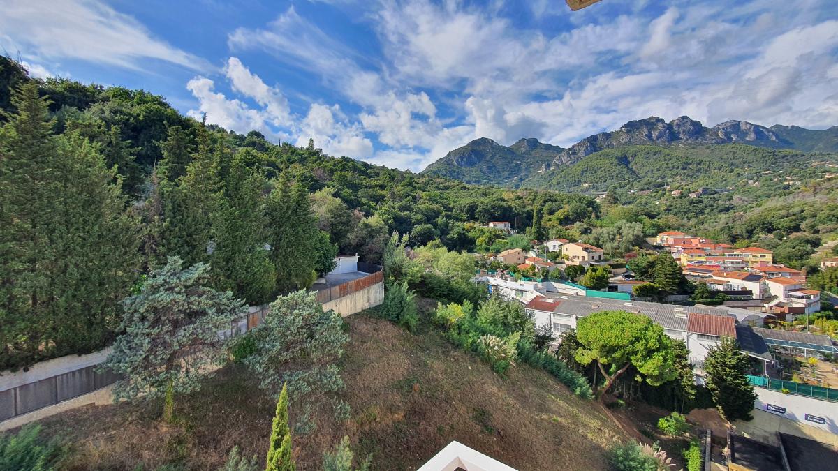 MENTON, quartier Suillet, en dernier étage d'une copropriété bien entretenue, agréable 3P traversant de 58m² en bon état + balcons composé d'une cu...