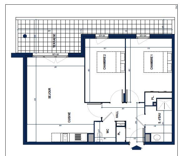 Maison de résidence semi individuelle en retrait de rue comprenant hall d’entrée, salon séjour, cuisine, wc, pal...