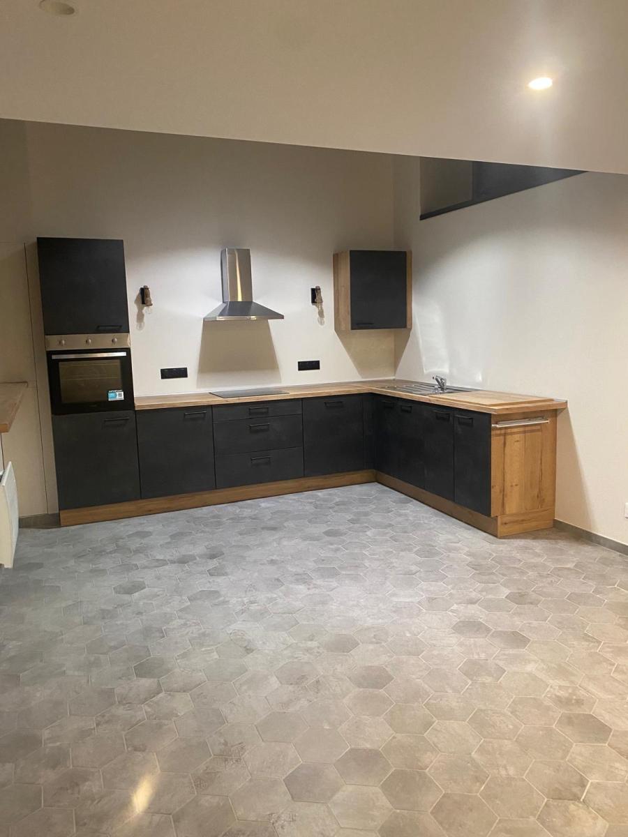 Composé d'un salon-séjour, une cuisine équipée (lave vaisselle, four, plaques, hotte),