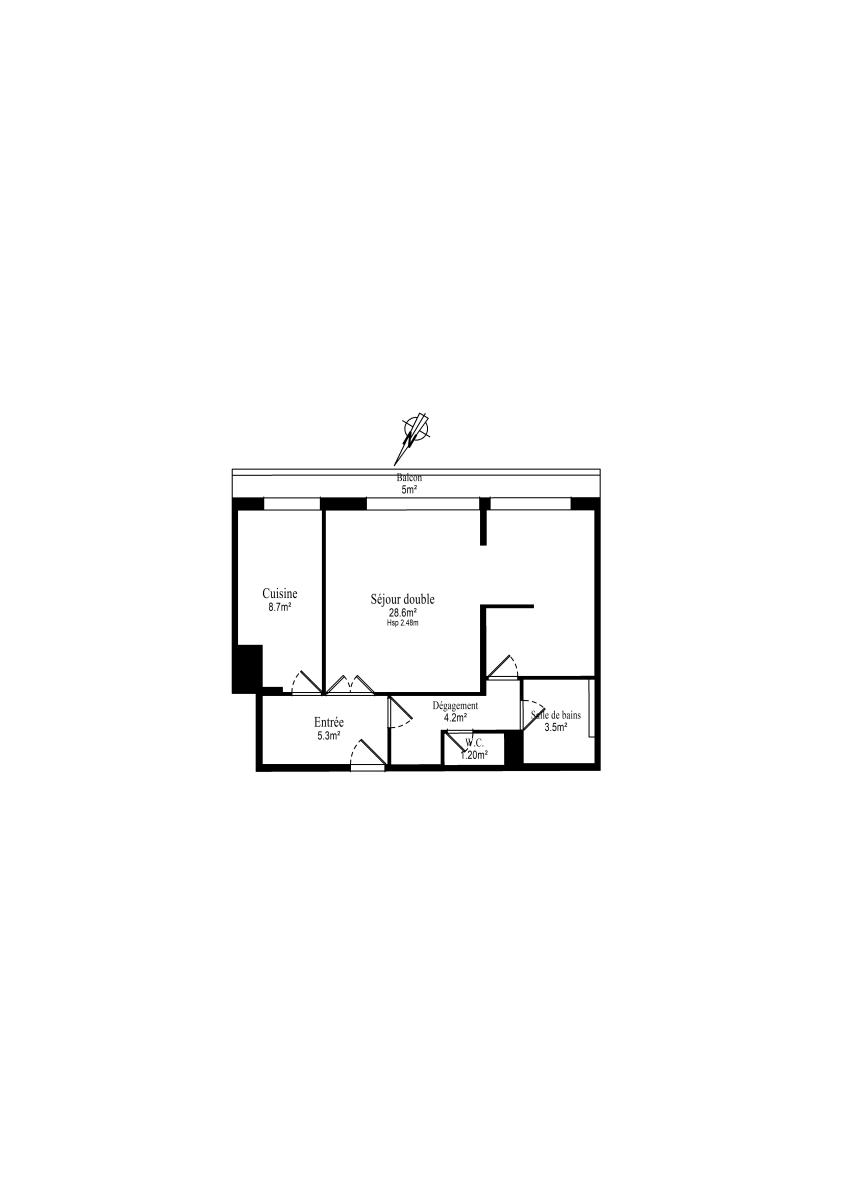 Entrée, placards dans couloir, cuisine amé...