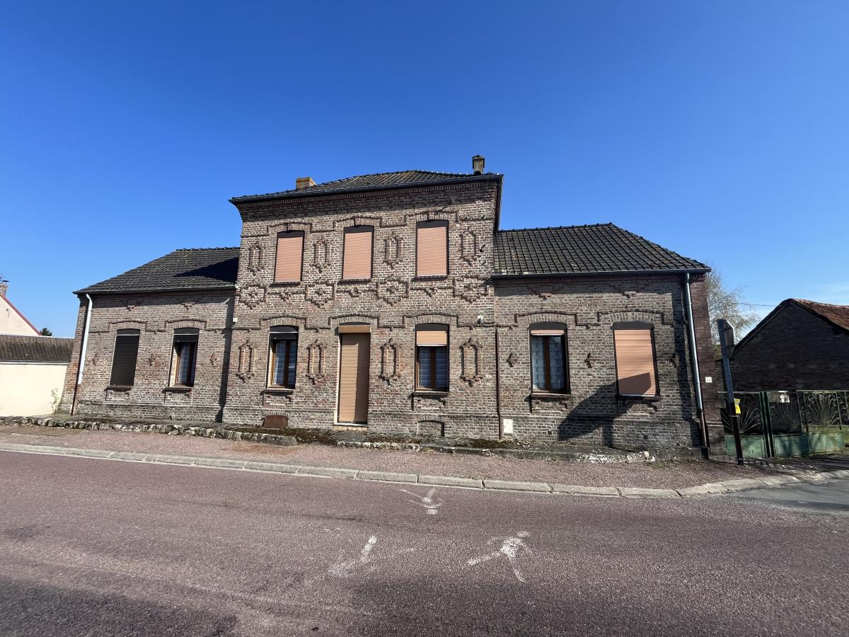 Maison en brique comprenant cuisine , salle à manger , séjour , une chambres salle d'eau , WC , à l'étage palier desservant trois chambres et deux...