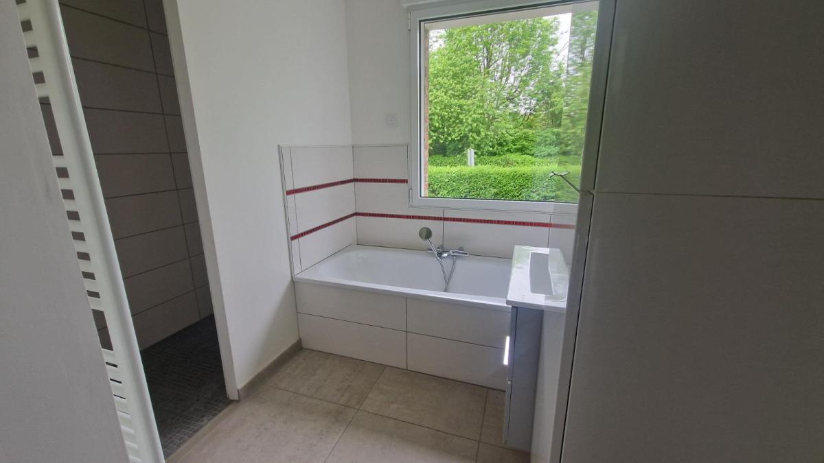 A LOUER PLAIN PIEDS En campagne de BOIS GRENIER, belle individuelle de type plain-pied et entièrement excavée, érigée sur plus 1200m², LOYER 1450 EUROS HORS CHARGE.