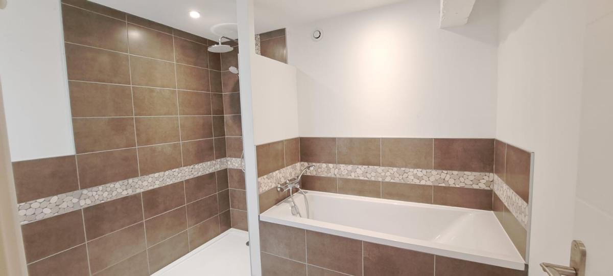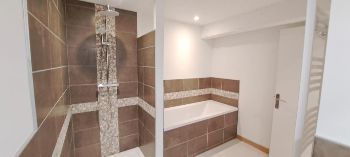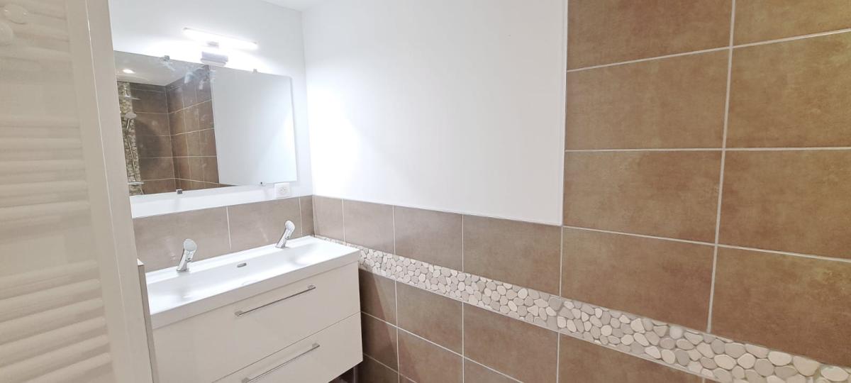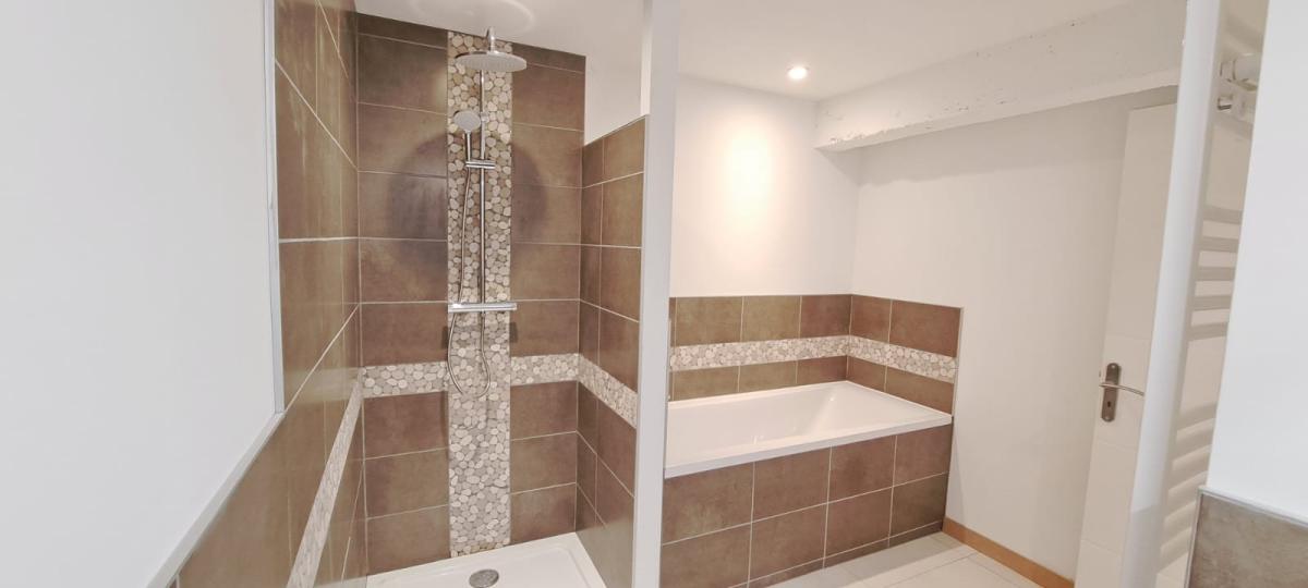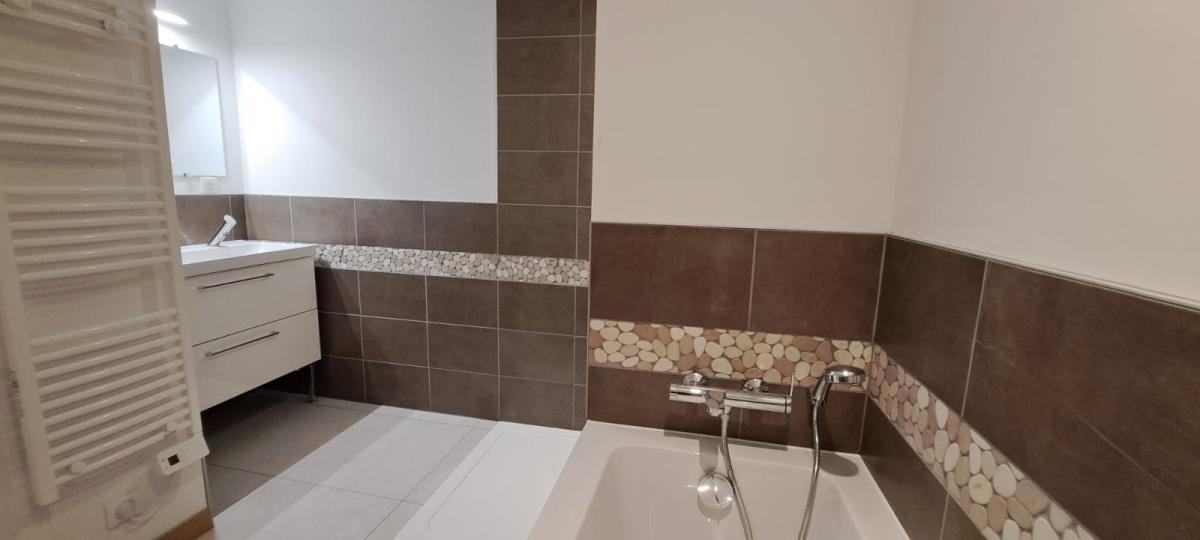 UN APPARTEMENT DE TYPE 4 D'UNE SURFACE DE 89.60 M2 COMPRENANT UNE BELLE PIECE DE VIE OUVERTE SUR UNE CUISINE EQUIPEE, UN CELLIER, UN WC