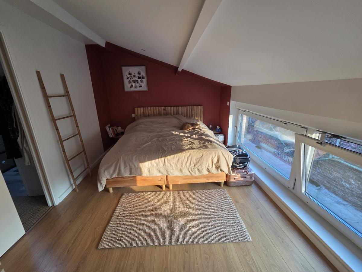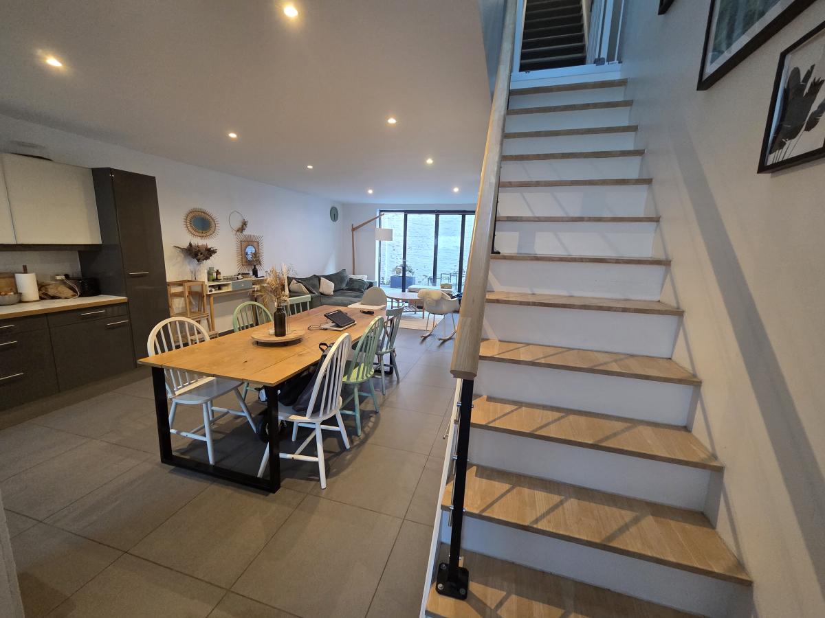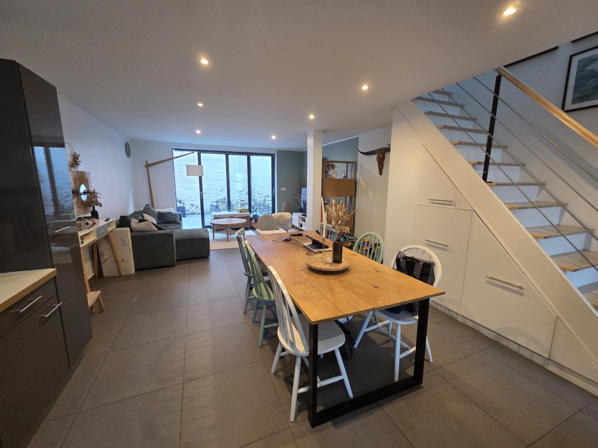 A VENDRE A TOURCOING - A MOINS DE 10 MINUTES A PIED DU METRO ET DU TRAMWAY DU CENTRE DE TOURCOING, UN APPARTEMENT EN TRIPLEX ( STYLE MAISON ) EN RETRAIT DE LA RUE, DANS UNE PETITE COPROPRIETE DE 18 LOTS, COMPLETEMENT AU CALME. Il comprend un sas d'entrée, une très belle pièce de vie avec cuisine équipée ouverte de 43.5 m2, 1 wc, une baie vitrée donne sur la cour privative - au 1er étage : 2 chambres parquetées, une grande salle de bains avec baignoire et WC suspendus, Une buanderie-Au 2eme étage : une suite parentale comprenant une salle de bains, une chambre et un dressing.