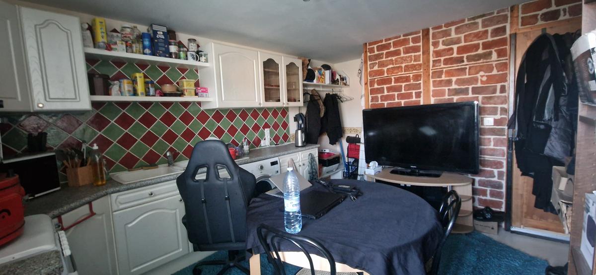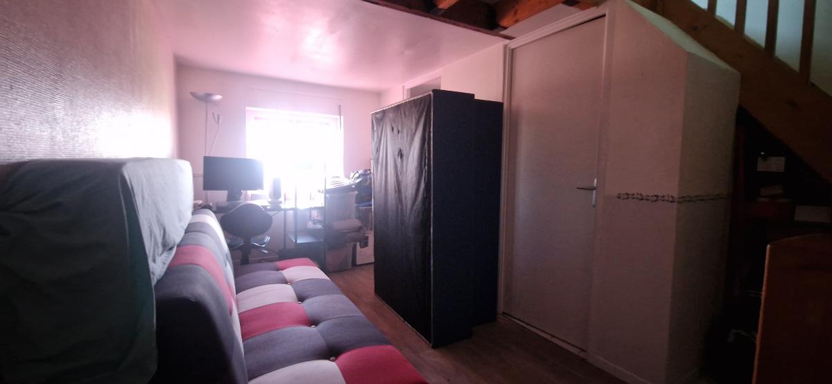 Logement 1, type 2, (vendu loué : 531 euros HC/mois) en bon état. Environ 35 m², une pièce de vie de 14 m² (env), un bureau de 9 m², une salle de douche et une chambre de 9.5 m².