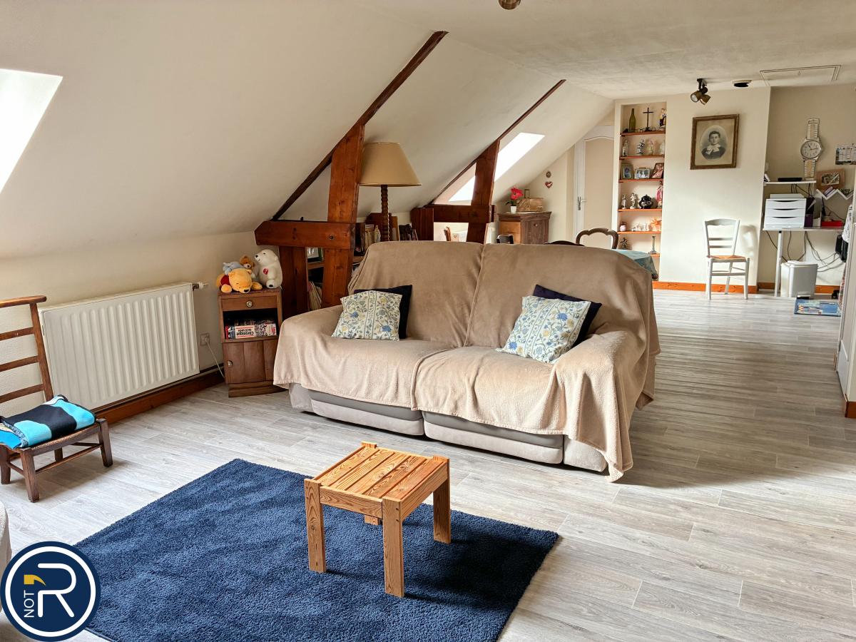A l'étage : espace mezzanine, deux chambres,, salle d'eau, WC, grenier.