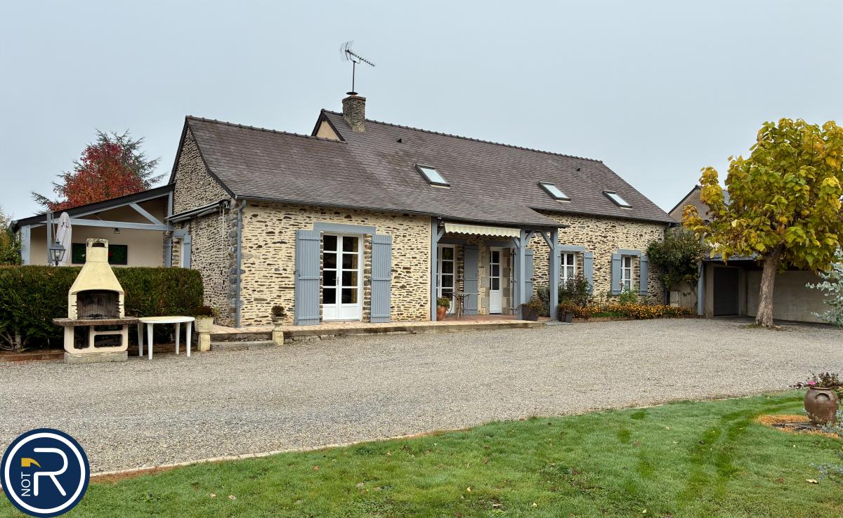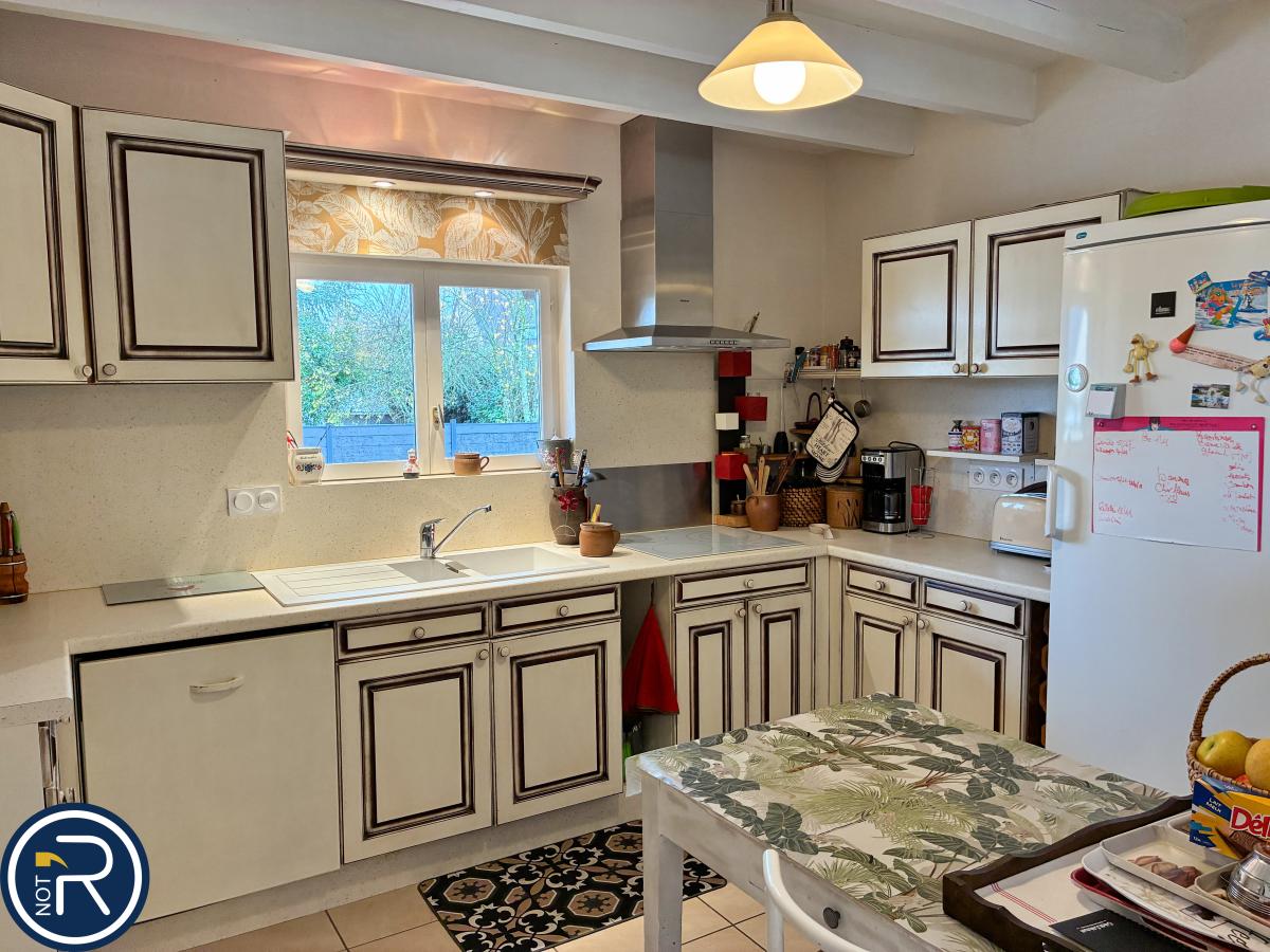 Une maison en pierres comprenant au rez de chaussée : entrée avec placard, salon, salle à manger avec partie cuisine aménagée et équipée, arrière cuisine, dégagement, salle de bains, trois chambres avec placard, WC.