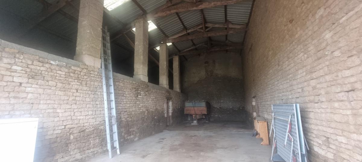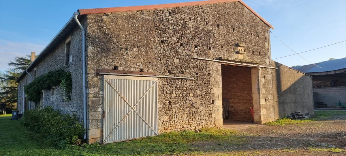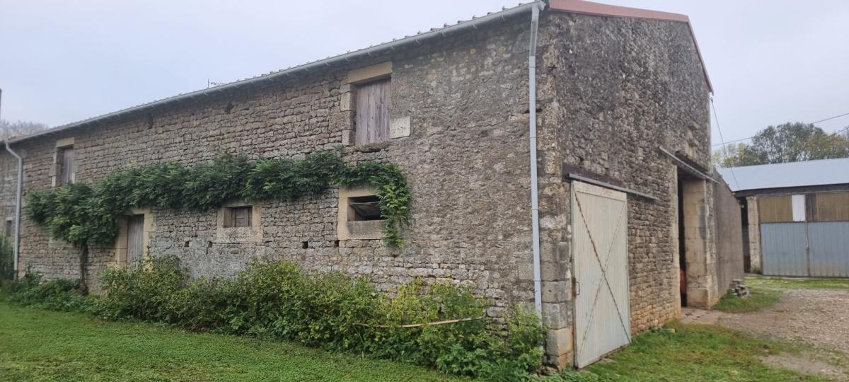 COMMUNE DE VOUILLE, ensemble immobilier comprenant: une magnifique grange en pierre de 94,16 m² avec une hauteur sous plafond de 6,68 mètres, une écurie de 91 m² et un préau de 83 m². Non viabilisés. Tout à l'égoût dans la rue. Le tout sur un terrain d'environ 700 m² (A déterminer au moment du bornage qui est à la charge du vendeur)