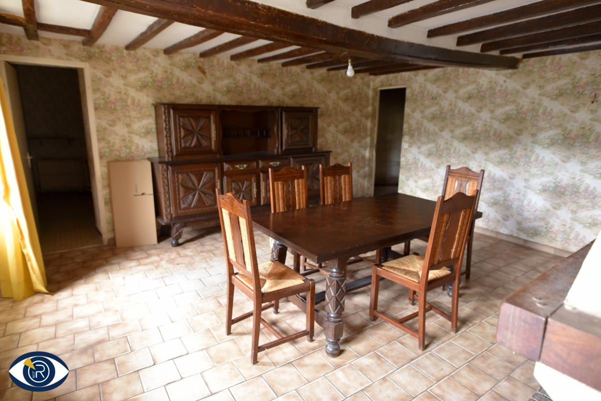 Une maison ancienne en bord de route comprenant de plain pied cuisine, séjour, 3 chambres, salle d'eau, WC, dégagement,