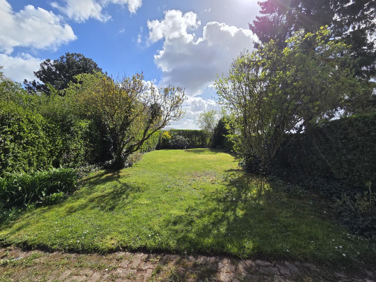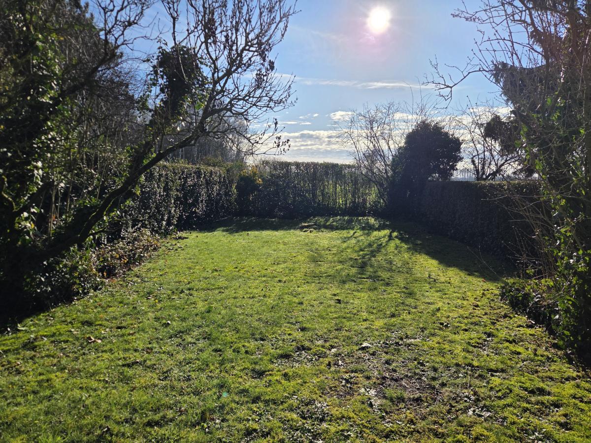 Jardin plein sud avec vue sur les champs.