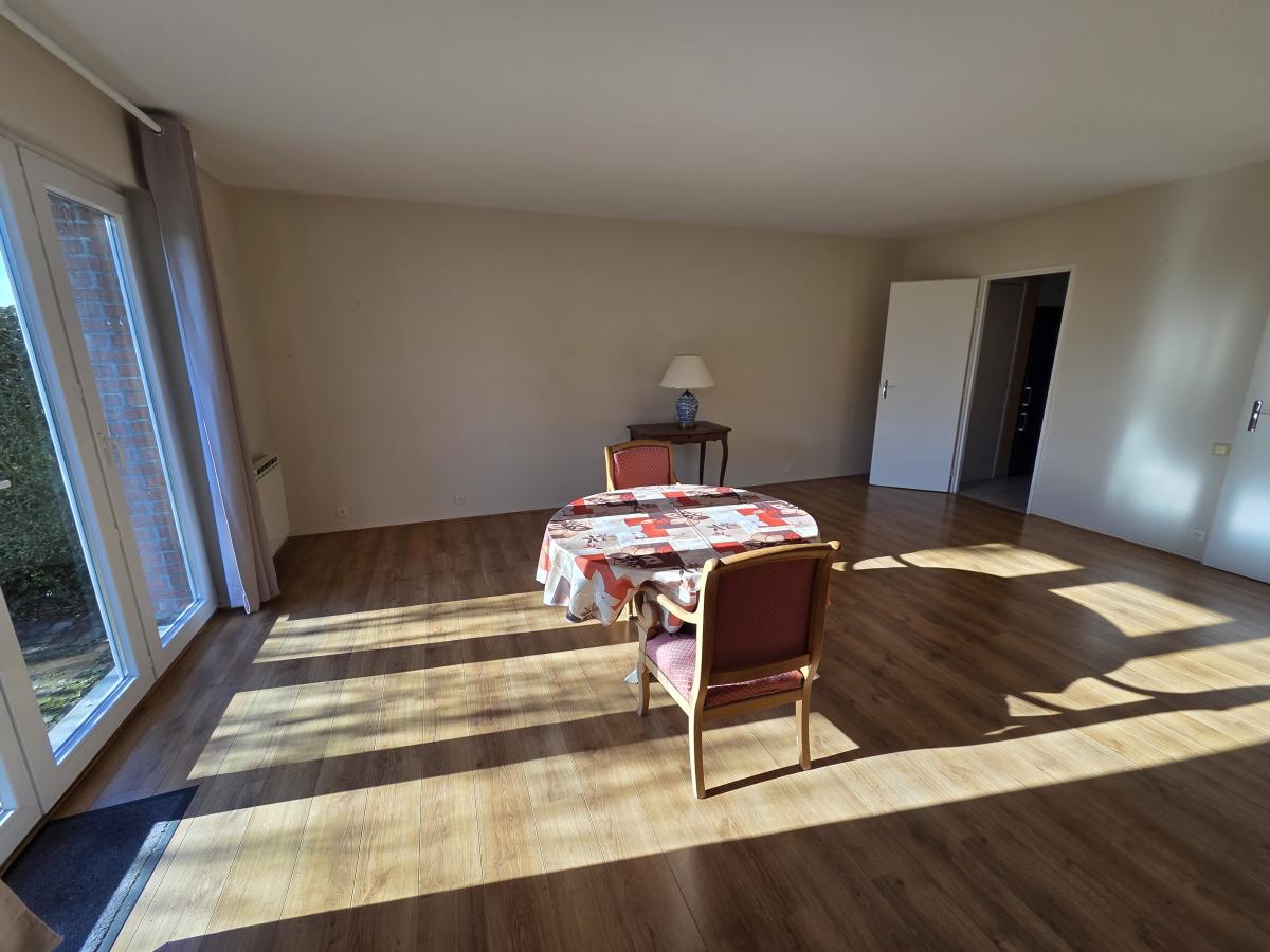 A VENDRE A BONDUES, DANS UN SECTEUR TRES CALME, A 2 PAS DU SEPTENTRIONET A 5 MINUTES EN VOITURE DE L'ECOLE DE LA CROIX BLANCHE, une maison construite en 1982, avec garage et jardin. elle comprend un hall d 'entrée, un séjour lumineux, avec cheminée insert, baie vitrée sur le jardin, cuisine équipée séparée avec espace repas,