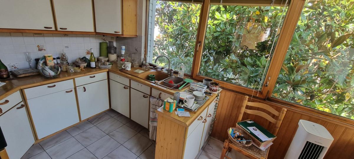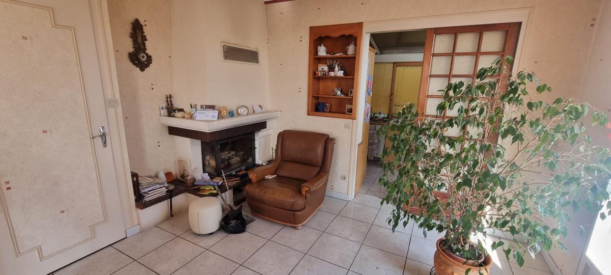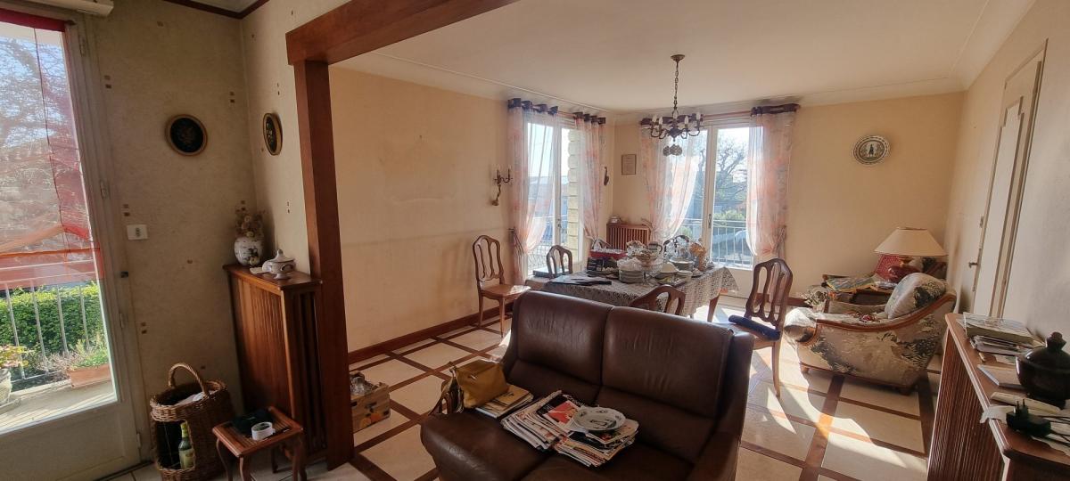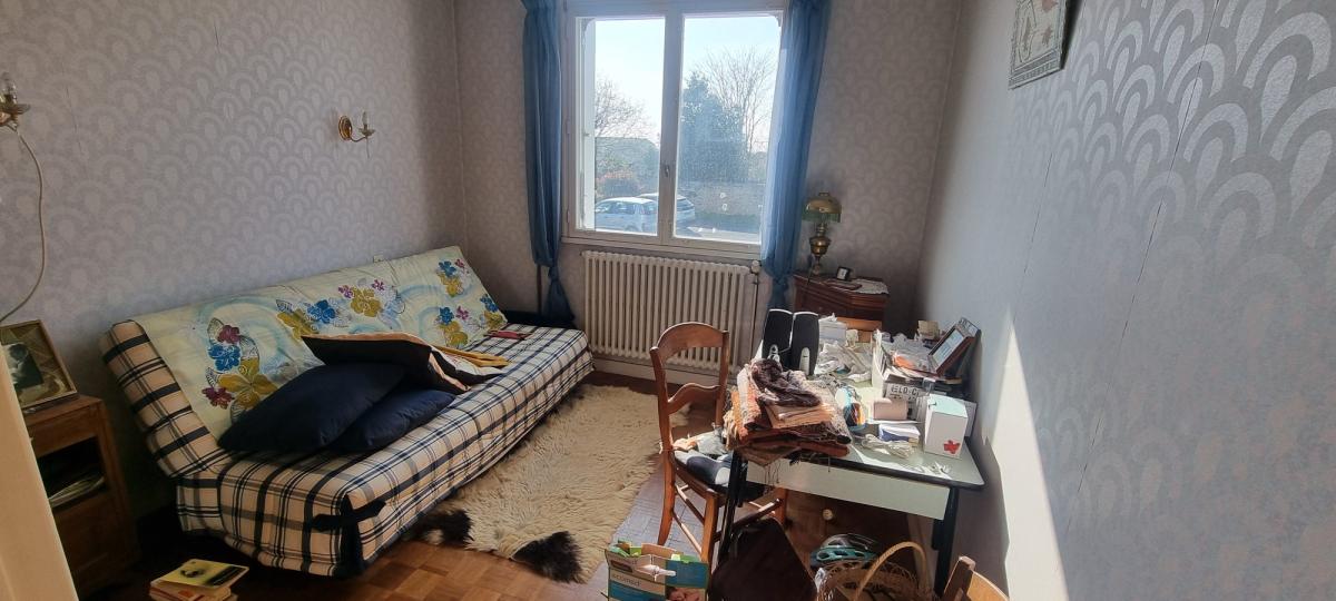 NIORT QUARTIER SOUCHE, pavillon sur sous-sol comprenant: au rez-de-jardin: un garage de 49 m², une chaufferie, une salle d'eau avec un wc, une chambre, une cave. A l'étage: un séjour-salon avec une cheminée, un dégagement/entrée, trois chambres dont deux avec placard, une salle de bains, un wc, une cuisine aménagée et équipée (plaque, hotte, four). Le tout sur un terrain clos et arboré de 610 m² avec un abri de jardin en bois. Prévoir travaux. Tout à l'égout, chauffage par pompe a chaleur.