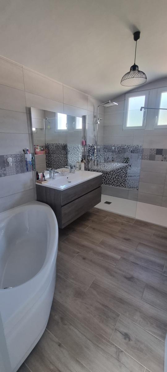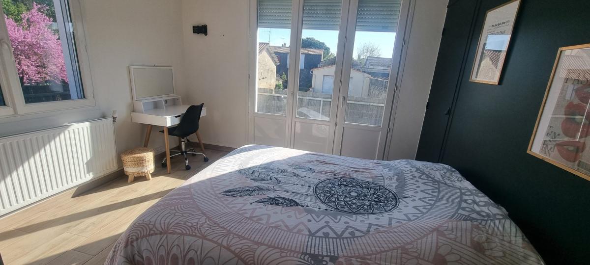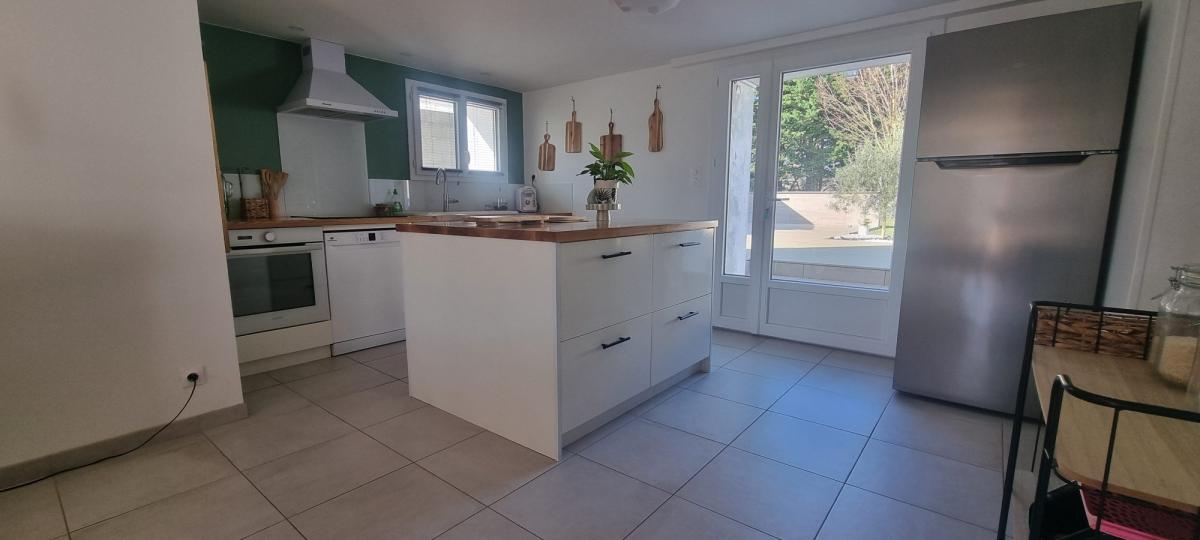 AIGONDIGNE, commune de Mougon, pavillon de 125 m² comprenant: au rdc: une arrière-cuisine aménagée, un wc, une cuisine aménagée et équipée (plaque, hotte, four) refaite en 2022, un séjour-salon. A l'étage: 4 chambres, un wc, une salle de bains, un dégagement. Non attenant: un garage, un préau. Terrasse. Le tout sur un terrain de 815 m². Volets roulants solaires. Chaudière gaz de ville récente. Tout à l'égoût.