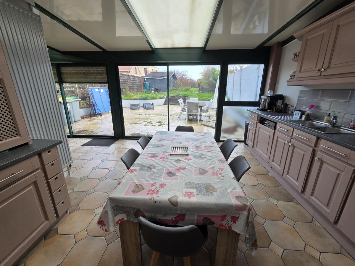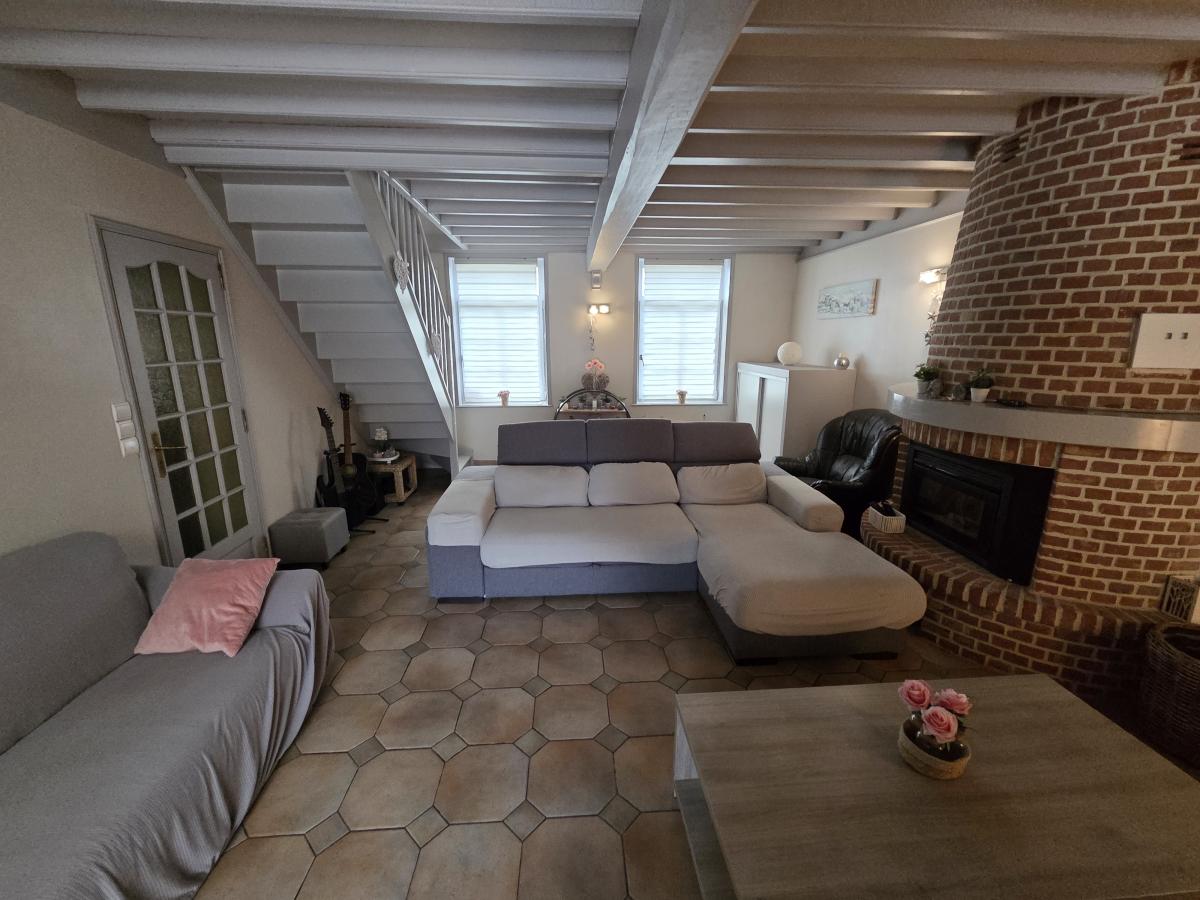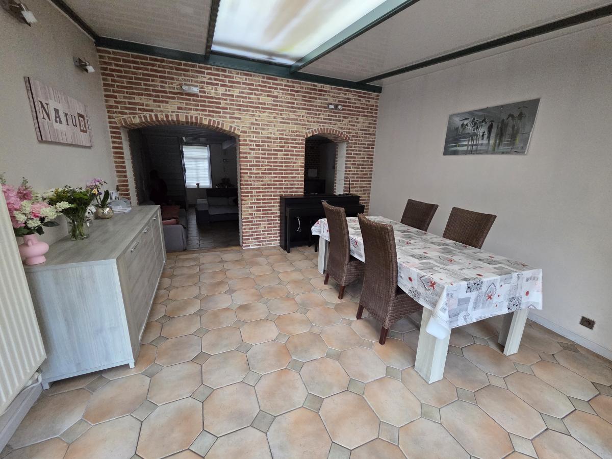 A VENDRE A HALLUIN - MAISON DE TYPE FLAMANDE COMPRENANT une superbe pièce de vie avec poutres et murs briques apparentes de 50 m2 env, ouvert sur une cuisine équipée et son espace repas de 20 m2 env, une salle de bains, une lingerie, un WC.