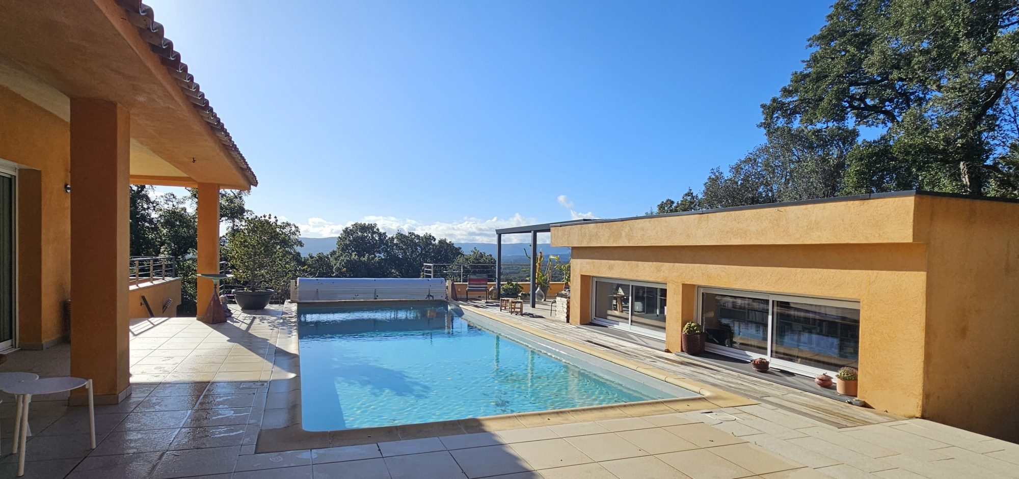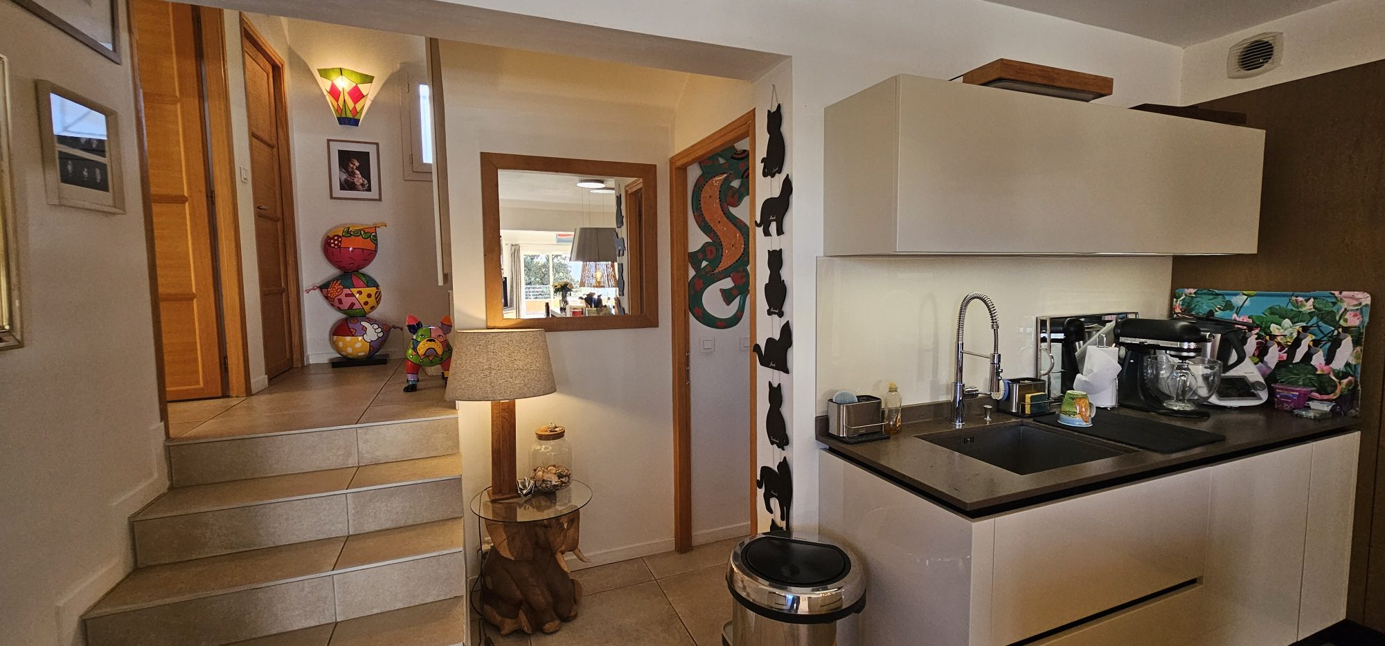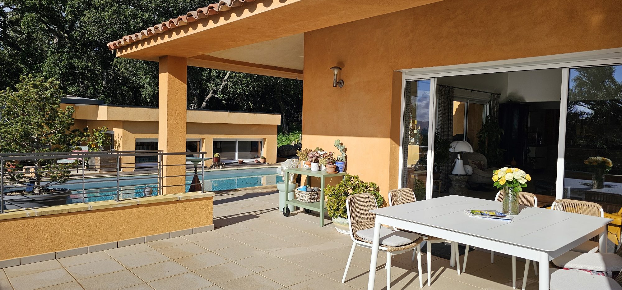 À l’extérieur, la piscine au sel (11 x 4 m) s’intègre naturellement au jardin, tandis que le jacuzzi offre un espace de détente complémentaire. De plus un abri permet de stationner vélos et scooter en toute praticité.