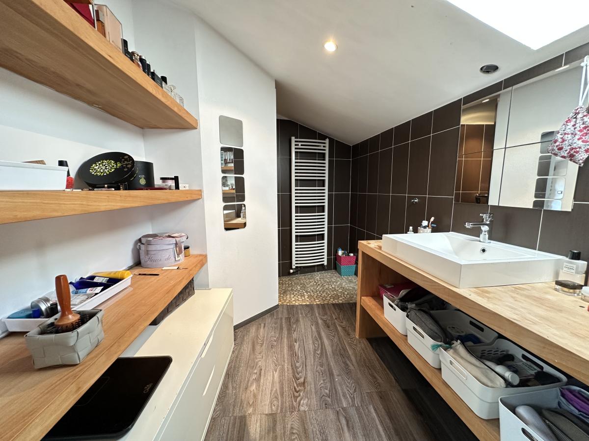 Dès l’entrée, vous serez séduits par les volumes et l’ambiance chaleureuse de ce bien : Rez-de-chaussée : hall d’entrée avec placard, vaste séjour, salon cosy avec cheminée à foyer fermé, cuisine aménagée et équipée - 1er étage : palier desservant trois chambres, dont une avec dressing, une salle de bains, WC séparés - 2ème étage : suite parentale spacieuse occupant tout le niveau, avec salle d’eau privative, dressing et poutres apparentes pour une atmosphère unique. En annexe : lingerie, préau pour voiture, un atout rare dans le cœur historique de Montaigu - charmante cour de ville clos de vieux murs. Une maison authentique aux beaux volumes.